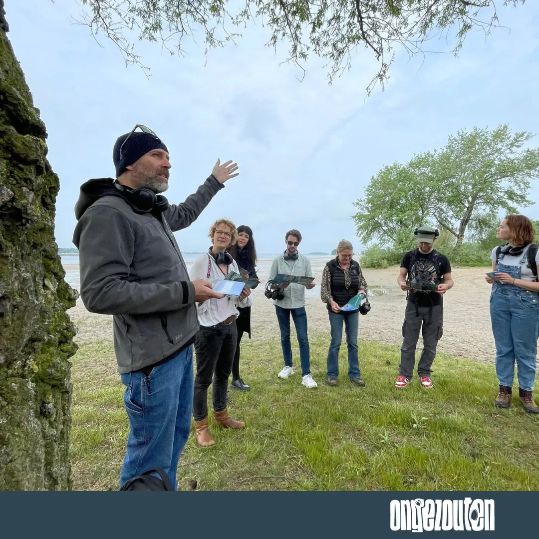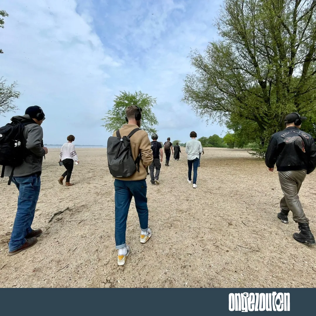 Deze keer gingen we op pad met Harm om de historische en hedendaagse verhalen over het leven met, op en ín het water van het IJsselmeer te ontdekken. Al luisterend naar de ONGEZOUTEN podcast-aflevering ‘IJsselmeer, een biodivers systeem?’ liep iedereen in stilte langs het water. Een deelneemster vertelde over haar ervaring: ‘Je focust en sluit je even af, maar tegelijkertijd gaan ook je ogen open. Doordat je wandelt in stilte ben je je veel meer bewust van de natuur om je heen en komt op die manier het verhaal echt binnen.’